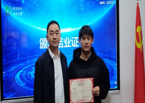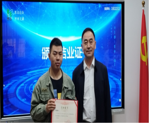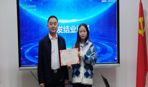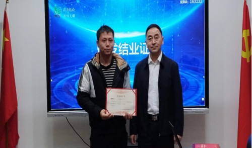 刘纯军副总裁为学员颁发了结业证书,并提出了三点希望:一是希望大家继续保持实训期间谦虚好学、遵章守纪、团结协作等好的方面,不忘初心、勇毅前行;二是希望大家都找到一份心仪的工作,发挥优长、展现自己;三是希望大家多关注公司的建设发展,加强联系、常来看看。最后预祝大家一帆风顺,前程似锦。 (罗亚娟—运营管理中心)